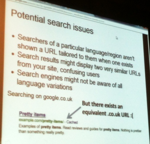 Maile takes the podium to talk about multilingual sites and rel=”alternate” hreflang. A lot of sites are expanding internationally and with variations of languages. She’ll highlight 3 issues: