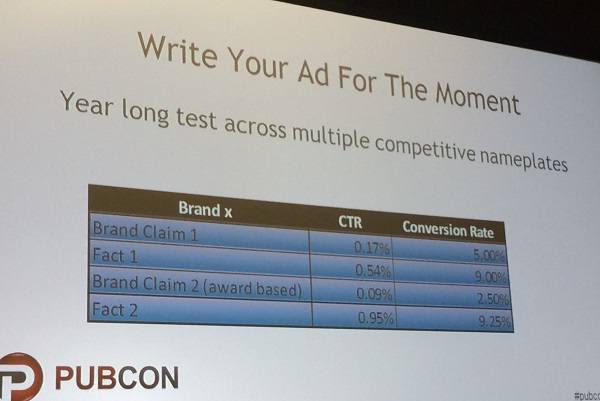 Write your ad for the moment. A year-long test across multiple competitive nameplates show the following (and the author’s take is that facts perform better than brand claims):