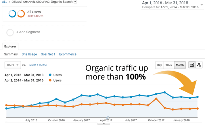- Content improvements: We recommended several ways to raise content quality site wide and helped with on-page revisions.